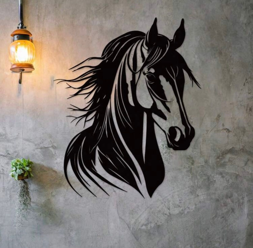 Wir stellen Ihnen unser exquisites Schild Pferdekopf mit personalisierten Namen vor, ein atemberaubendes Stück Wandkunst aus Metall, das jeder Inneneinrichtung einen Hauch von Eleganz verleiht. Dieses 1-teilige Wandgemälde aus Metall verfügt über eine wunderschön gearbeitete Pferdekopfskulptur und ist damit das perfekte Statement-Stück für Pferdeliebhaber und Reitsportbegeisterte. Egal, ob Sie es drinnen oder draußen aufhängen, dieses Tier-Wandbild wird die Ästhetik Ihres Wohnraums sofort aufwerten. Darüber hinaus kann diese personalisierte Pferdekopfskulptur mit einem Namen Ihrer Wahl versehen werden, was sie zu einem aufmerksamen und einzigartigen Geschenk für einen geliebten Menschen macht. Bringen Sie mit unserem Schild Pferdekopf mit personalisierten Namen einen Hauch der Welt des Pferdesports in Ihr Zuhause.